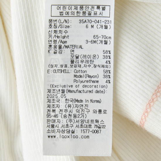 소 재............면58%,모달(레이온)38%,폴리우레탄4%