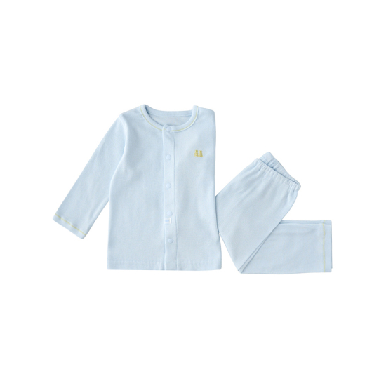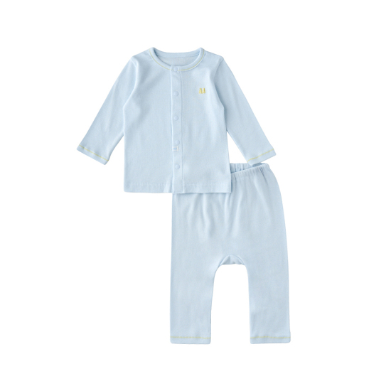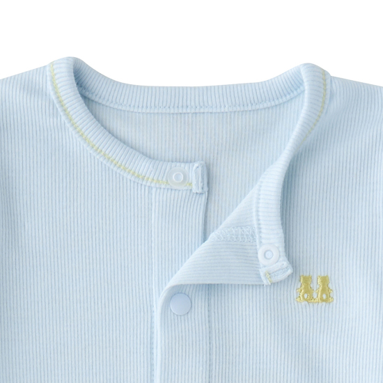 퓨어한블루 컬러 내의에 밍크뮤로고 자수를 포인트로 준 디자인으로 아기들에게 선물하기 용이한 아이템입니다.