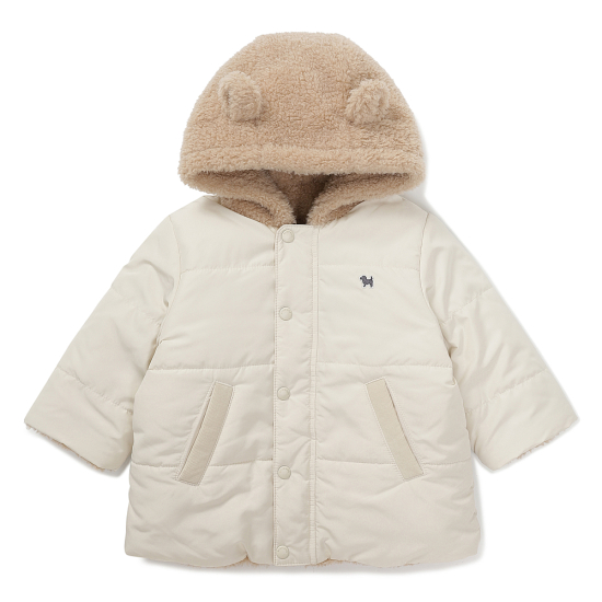 지 점퍼의 느낌을 낼 수 있고, 귀여운 후드 귀 장식, 따뜻하고 부드러운 소재 디테일이 돋보입니다.