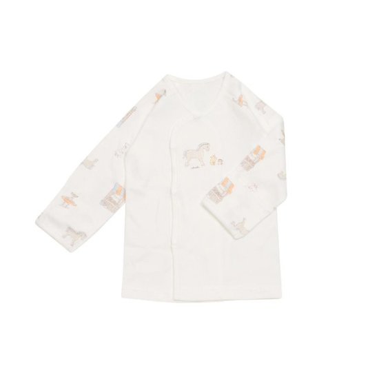 귀여운 말 캐릭터가 디자인 된 배냇저고리로, 부드러운 뱀부소재의 신생아용 배냇저고리입니다.