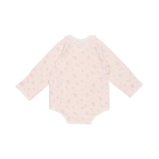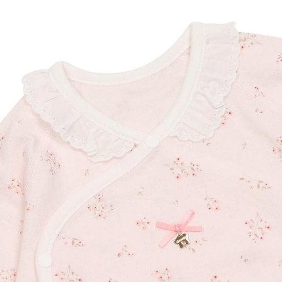 잔잔한 꽃무늬가 디자인 된 배냇슈트와 속싸개+손싸개로, 부드러운 모달 소재의 신생아용 배냇슈트 입니다.