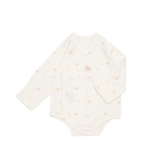 말 캐릭터가 깔끔하게 디자인 된 예쁜 배내슈트로, 신생아의 체온을 포근하게 유지시켜 줍니다.