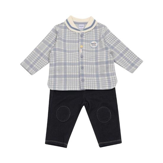 체크셔츠가 고급스러움을 더해주며 신축성 있는 바디는 아기가