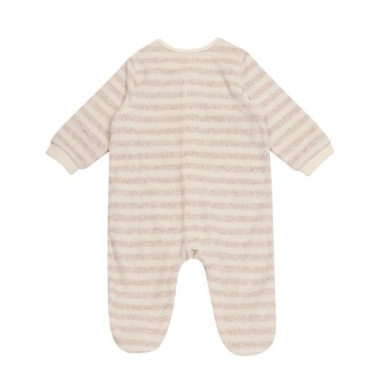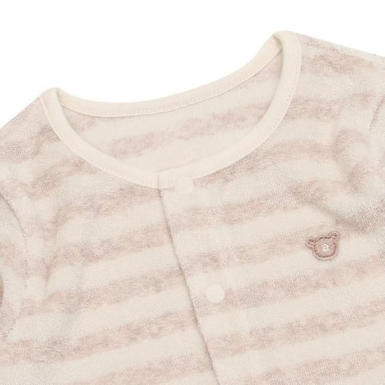 부드러운 타월지로 편한 색감의 모자세트로 된 우주복입니다