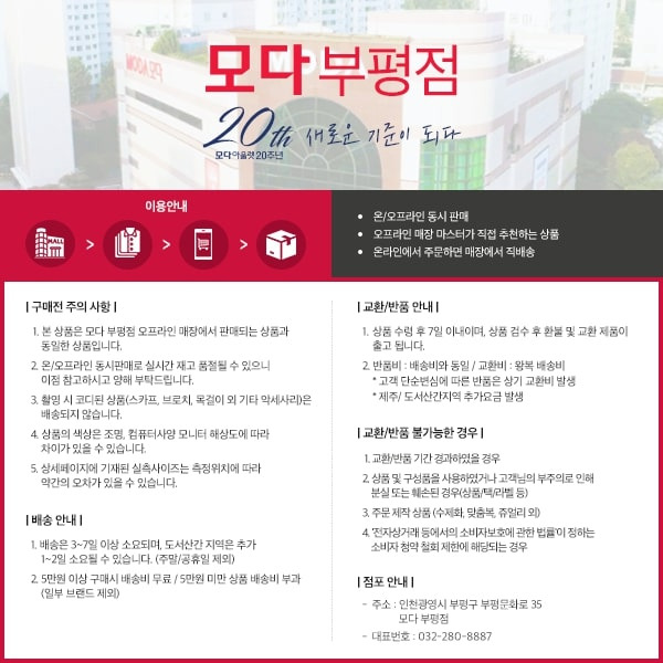 반품 주소  인천 부평구 부평문화로 35 모다부평점 6층 행텐주니어