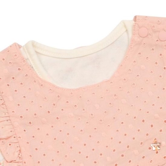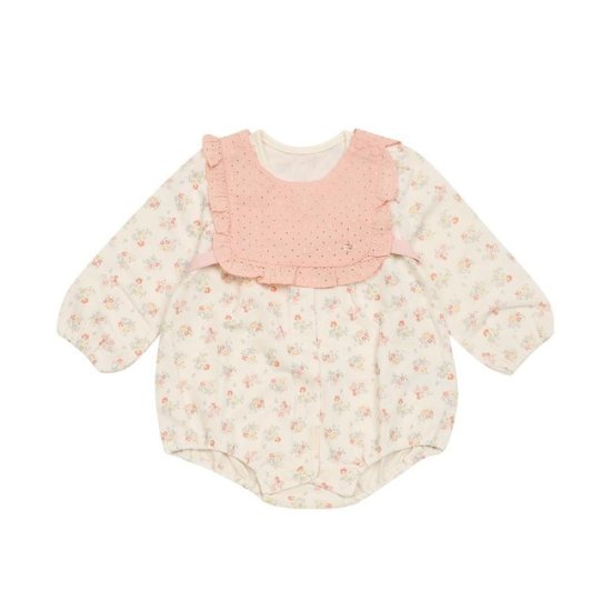 귀엽고 사랑스럽게 입힐 수 있는 잔꽃무늬 바디슈트와 턱받이세트 상품입니다