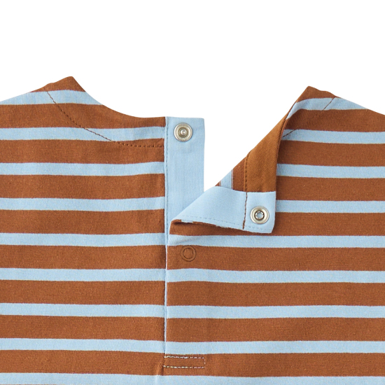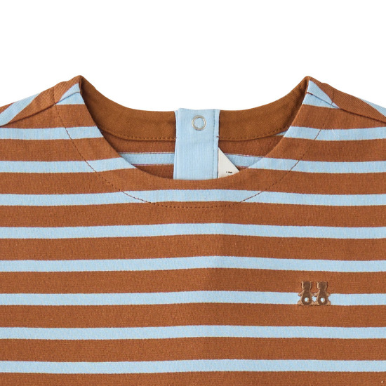 브라운컬러와 블루 컬러를 믹스한 베이직 스트라이프 티셔츠입니다.