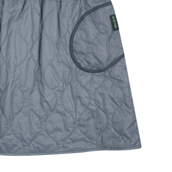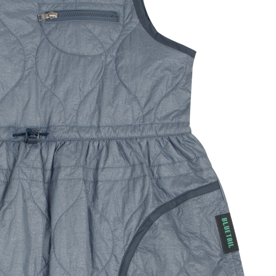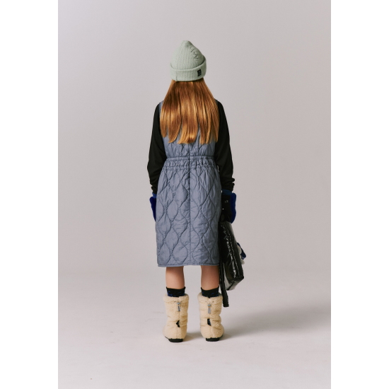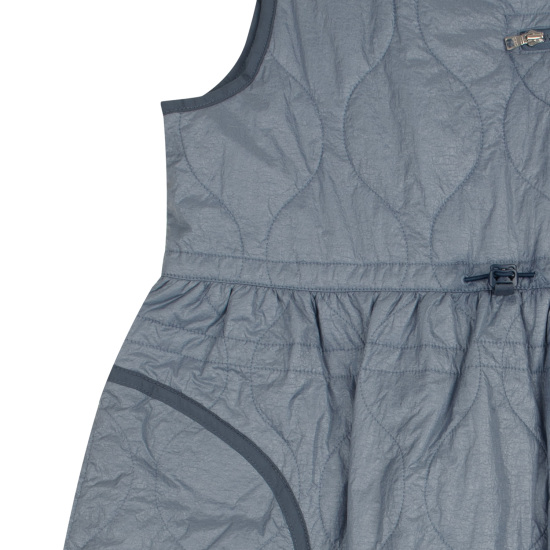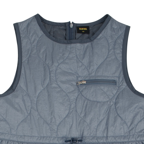 빈티지한 광택감이 있는 나일론 소재로 만든 퀼팅 원피스입니다. 슬리브리스 디자인으로 풀오버(AXH2TS01, 02, 03)에 레이어링하여 입는 것을 추천합니다. 톤온톤의 그레이 컬러 배색 원단을 사용하여 포인트를 주었으며 허리 스트링을 조여 드라마틱한 라인으로 여성스럽게 입을 수 있는 디자인입니다. 전체 2oz 퀼팅 처리 되어 있습니다.
