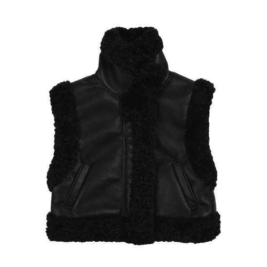 (롯데백화점)블랙 크롭 무스탕 베스트 AXH4VT01BK