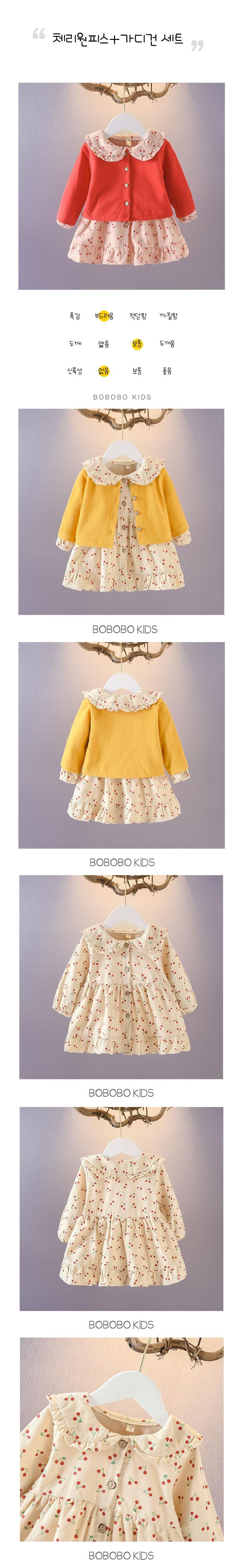 뽀뽀뽀 아동복 여아 체리원피스 가디건 2종 세트 유아 아가 키즈 아동 봄 가을 옷 등원룩 등원복 자매룩
