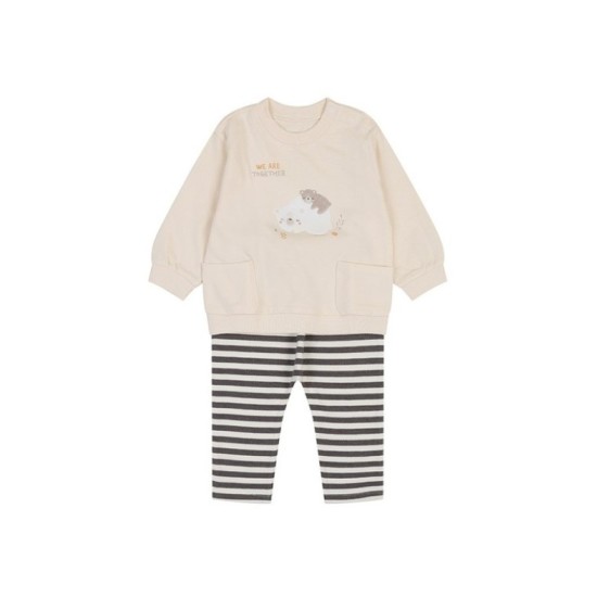상의에 포켓이 달려있어 포인트가 되고 하의는 줄무늬로 디자인되어 귀엽게 입힐수있는