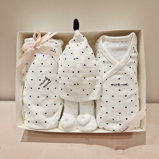 여밈이 간편한 기본 배내저고리,속싸개,모자,양말세트 아이템입니다.
