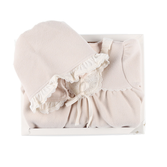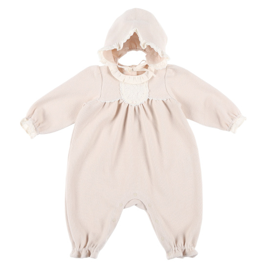다이마루 소재에 페이슬리 레이스가 배색되어사랑스러운 스타일의 우주복 세트프릴 레이스를 덧대어 세련된 느낌의 겨울 외출 우주복모자 세트 구성으로 겨울 선물하기에도 좋습니다. 배송메세지란에 메모를 남기시면 선물포장 됩니다.