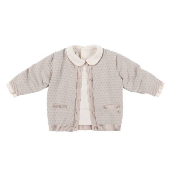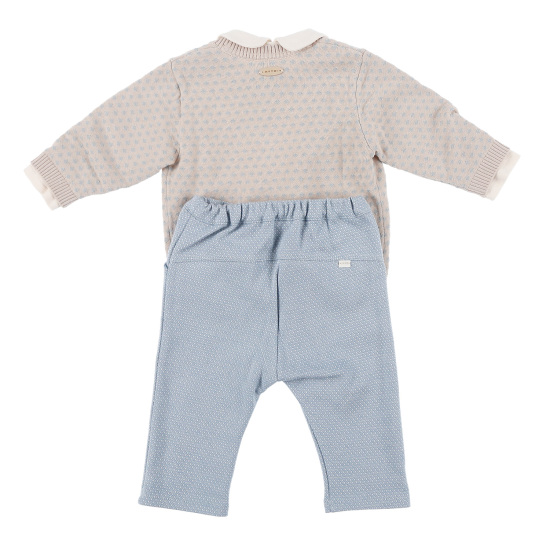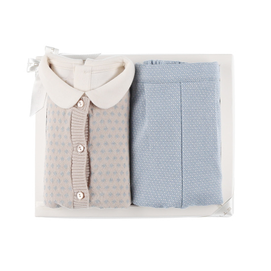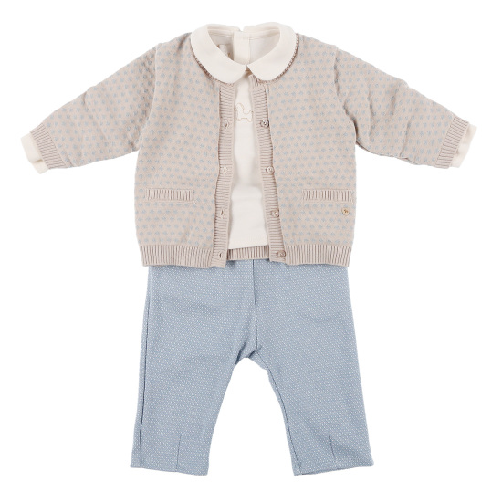 베이지와 블루 컬러 믹스로 고급스러운 면 니트 가디건면 쟈가드 소재가 돋보이는 3PCS 상하복둥근 라운드 카라 티셔츠의 말 자수 포인트를 주고블루컬러의 면 쟈가드 바지 세트 구성으로 멋스러운 유아 상하복 입니다. 배송메세지란에 메모를 남기시면 선물포장 됩니다.
