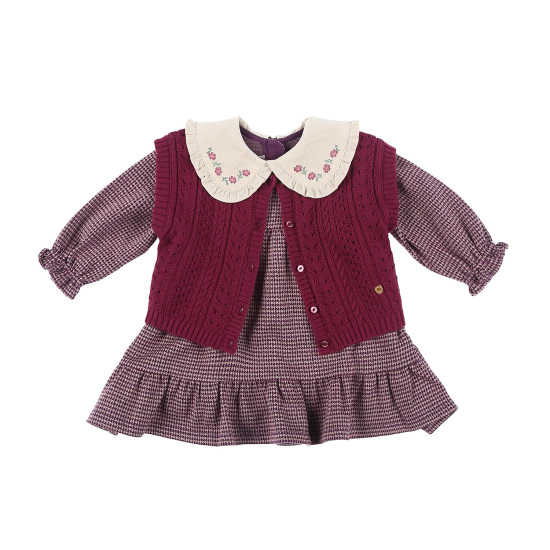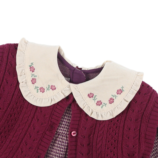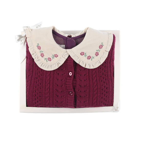 고급스러운 면 쟈가드 소재에 니트 조끼가 세트 구성인 원피스카라프릴에 꽃 자수로 사랑스러운 스타일의 유아 원피스 세트 입니다. 배송메세지란에 메모를 남기시면 선물포장 됩니다.
