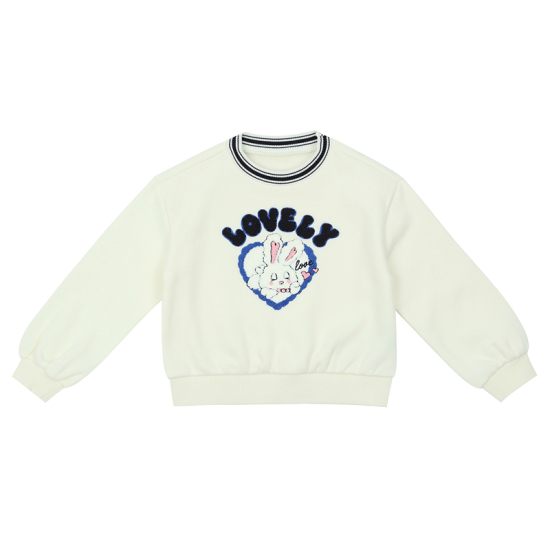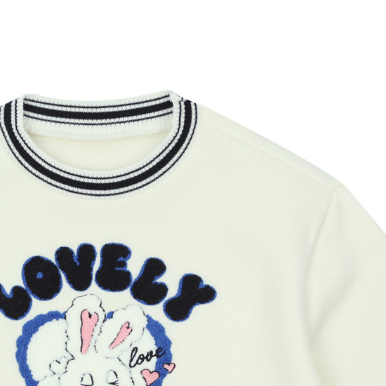 상세설명-깔끔한 아이보리맨투맨으로 시보리배색과 , 귀여운토끼 부클직자수로 포인트을 준 아이템. 어디에나 코디 가능한 아이템입니다.