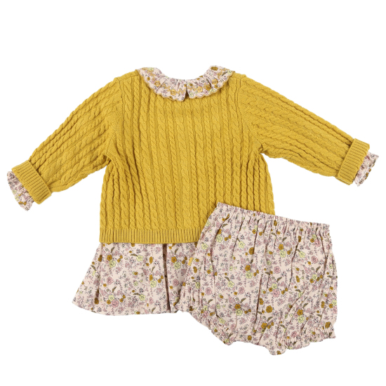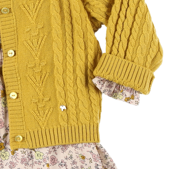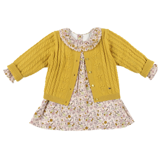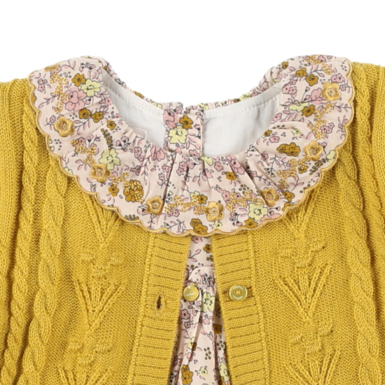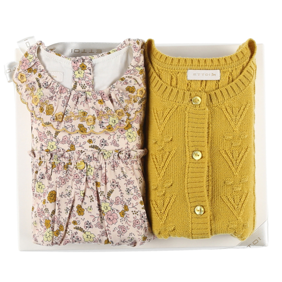 은은한 컬러감의 꽃나염과 트렌디한 느낌의 꽈배기 니트 가디건 세트 원피스잔잔한 꽃나염과 목 라운드에는 옐로우 컬러의 자수로 포인트를 주어사랑스러운 느낌을 주는 스타일 입니다.뒷면에는 단추로 되어 착용하기 편리한 상품 입니다. 배송메세지란에 메모를 남기시면 선물포장 됩니다.