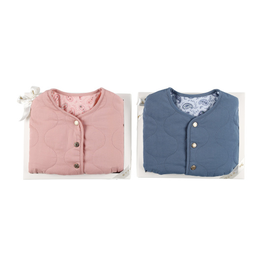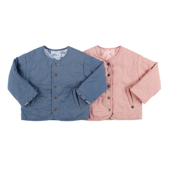 고급스러운 페이즐리 프린트의 리버시블 자켓으로 양면으로 입을수 있는 실용적인 아이템안감은 전체적인 페이즐리 프린트와 겉면은 단색 누빔 스타일로간절기 부터 겨울까지 가볍고 따뜻하게 입을수 있는 유아자켓 입니다.(핑크&블루 컬러중 택1 상품 입니다) 배송메세지란에 메모를 남기시면 선물포장 됩니다.