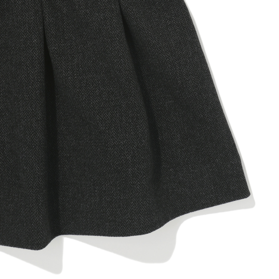 세련된 분위기의 그레이톤의 헤링본 조직 점퍼스커트입니다. 블랙 컬러의 네크라인 배색이 고급스러운 분위기를 더해주며 이너로 풀오버 티셔츠 또는 화이트 블라우스와 같은 아이템을 함께 스타일링하여 깔끔하고 세련된 분위기를 제안할 수 있습니다. 스커트단의 볼륨이 럭셔리한 분위기를 더해주어 모노톤의 세련된 스타일링을 제안할 수 있습니다.