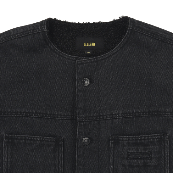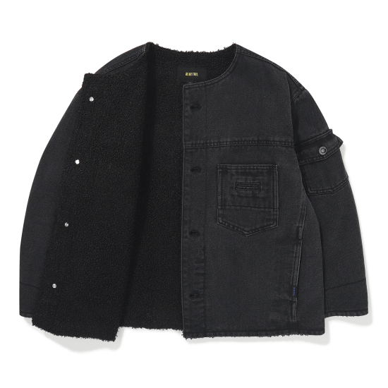 블랙 보아 퍼 안감을 넣어 세련되고 트렌디하며 보온성 있게 제안한 블랙 데님 자켓입니다. 카라 없이 디자인하여 셔츠나 후드를 레이어드하기에도 좋으며, 착용 시 언뜻 보이는 퍼가 멋스러워 가벼운 이너에 단독으로 착용해도 스타일링하기 좋은 상품입니다. 가슴 포켓으로 포인트를 주었고 사이즈 절개에도 숨겨진 포켓이 있어 실용적입니다.