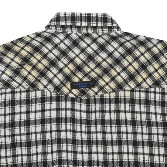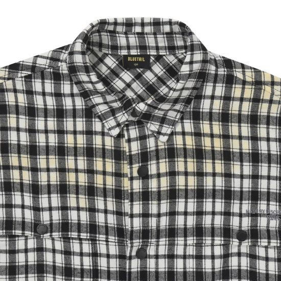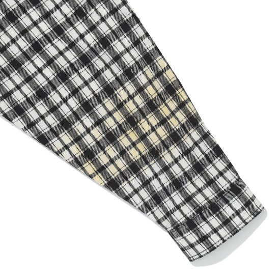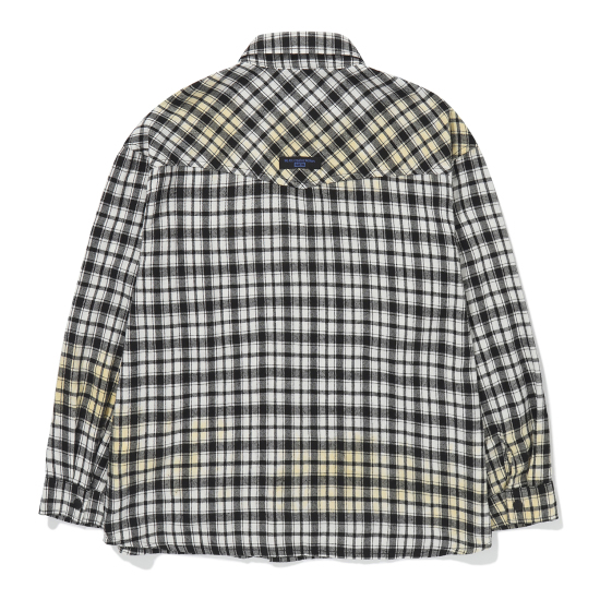 타이다잉 기법으로 유니크하게 제안한 체크 셔츠입니다. 모노톤 체크위에 옐로우 톤이 은은하게 그라데이션으로 멋스러운 상품입니다. 여밈에 블랙 스냅을 사용해 시크한 무드를 더했으며 포켓 위 자수로 원포인트 주었습니다.