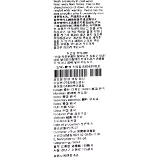 (롯데백화점)라이트 베이지 롱다운 점퍼BZ64JP01LBL