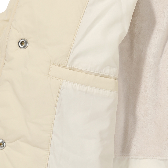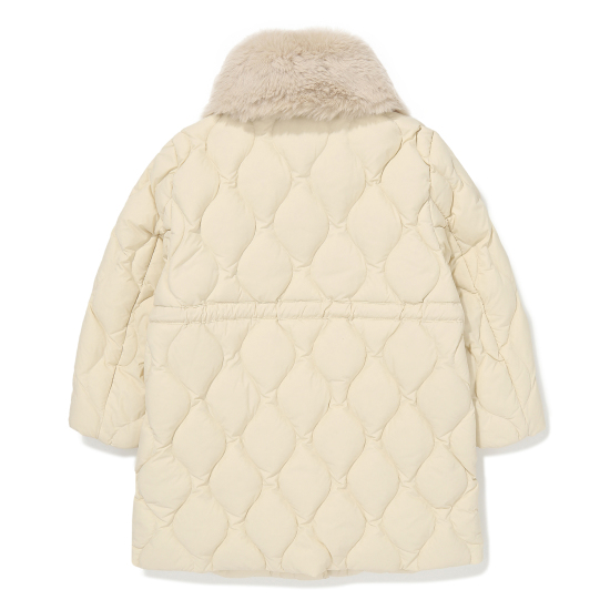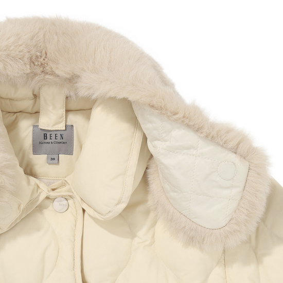 유니크한 퀼팅 라인이 돋보이는 라이트 베이지 컬러의 다운 점퍼입니다. 동글동글한 볼륨감이 입체적으로 느껴져 따뜻하고 고급스러운 분위기를 연출하며, 부드러운 촉감의 인조퍼 카라가 탈부착으로 세트 구성이 되어 있어 다양한 스타일링을 연출할 수 있습니다. 차콜 티셔츠와 팬츠를 셋업으로 함께 입어 편안하고 고급스러운 스타일로 제안하거나 아이보리 티셔츠, 베이지 골지 팬츠와 세련된 톤온톤 컬러감의 스타일링을 제안할 수 있습니다.