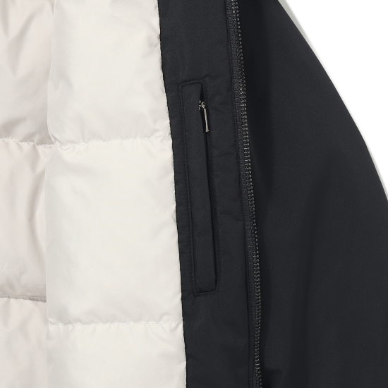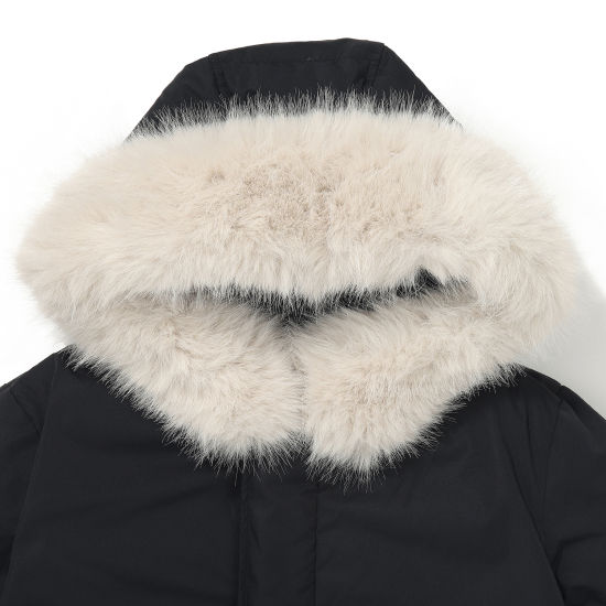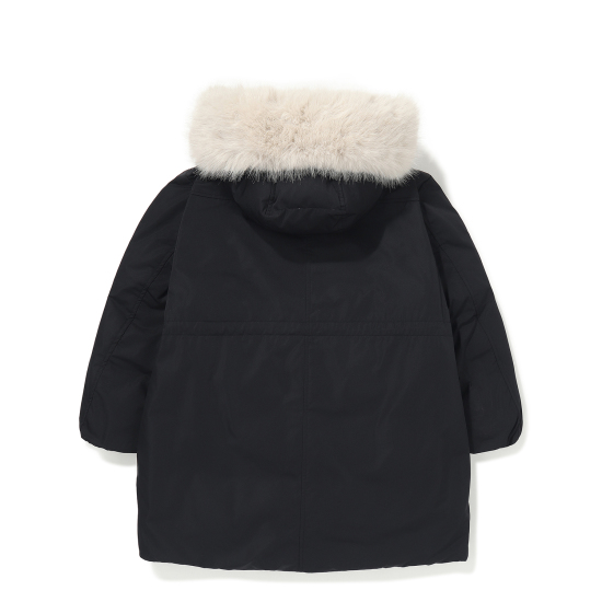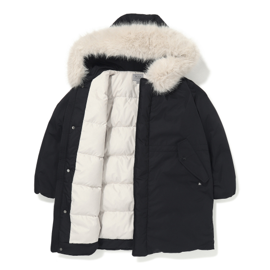 다운 점퍼입니다. 얼굴을 밝아 보이게 하는 라이트 컬러의 인조퍼 카라를 탈부착하여 고급스럽고 따뜻한 이미지를 강조해주며, 점퍼 안쪽을 볼륨감 있게 퀼팅 처리하여 남아 여아 모두 럭셔리하고 세련된 이미지로 스타일링 할 수 있는 아이템입니다. 허리 안쪽 스트링을 조여 미니멀한 라인이 보일 수 있도록 하여 스포티한 야상 스타일로도 연출할 수 있습니다.