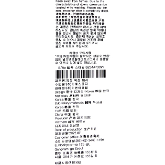 (롯데백화점)네이비 라인 롱다운 점퍼BZ64JP02NV