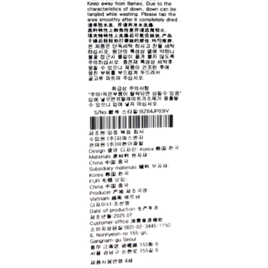 (롯데백화점)아이보리 퍼배색 다운 점퍼BZ64JP03IV