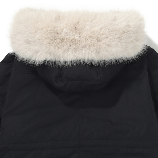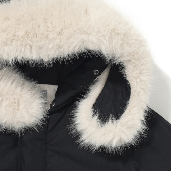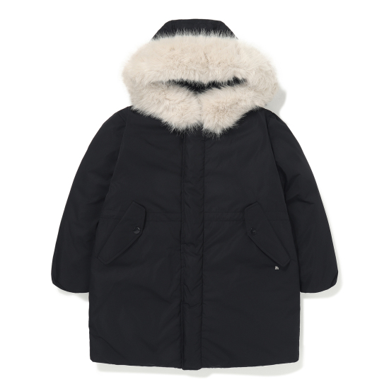 다운 점퍼입니다. 얼굴을 밝아 보이게 하는 라이트 컬러의 인조퍼 카라를 탈부착하여 고급스럽고 따뜻한 이미지를 강조해주며, 점퍼 안쪽을 볼륨감 있게 퀼팅 처리하여 남아 여아 모두 럭셔리하고 세련된 이미지로 스타일링 할 수 있는 아이템입니다. 허리 안쪽 스트링을 조여 미니멀한 라인이 보일 수 있도록 하여 스포티한 야상 스타일로도 연출할 수 있습니다.
