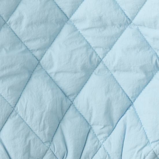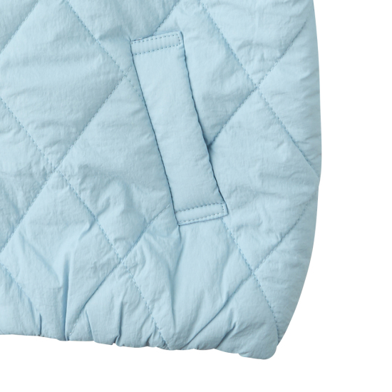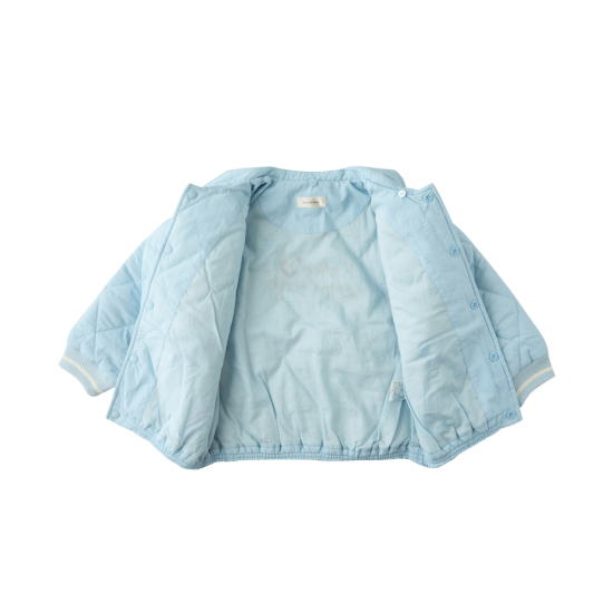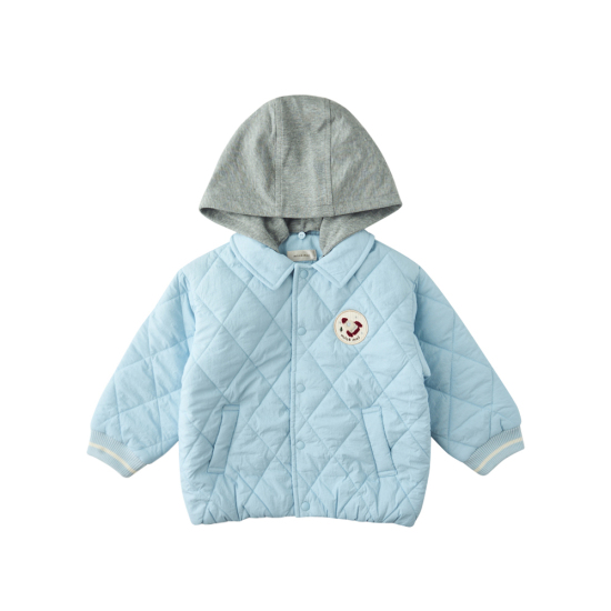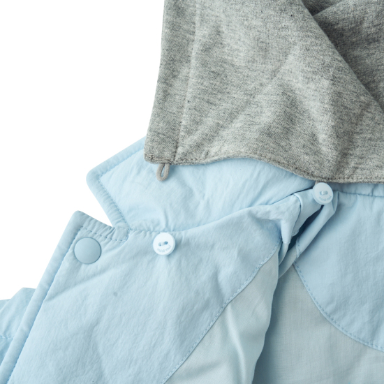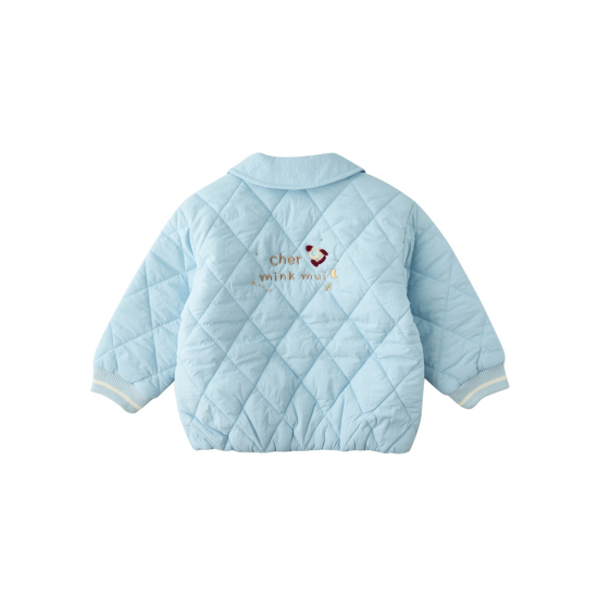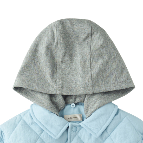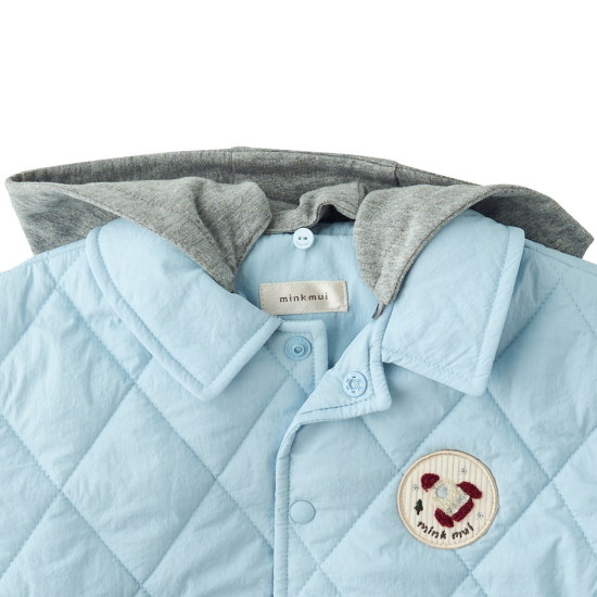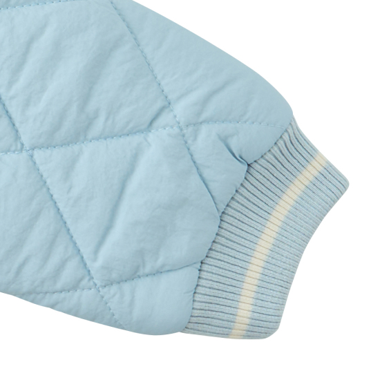 소프트한 블루 컬러의 화섬 퀼팅 점퍼입니다. 밍크뮤 로고 패턴 안감으로 포인트를 주었으며 탈부착되는 후드 디자인으로 두가지 스타일로 연출 가능합니다. 뒷판에 레터링과 부클 자수를 활용하여 포인트를 주었으며 포근한 두께감으로 간절기에 활용하기 좋은 아이템입니다.