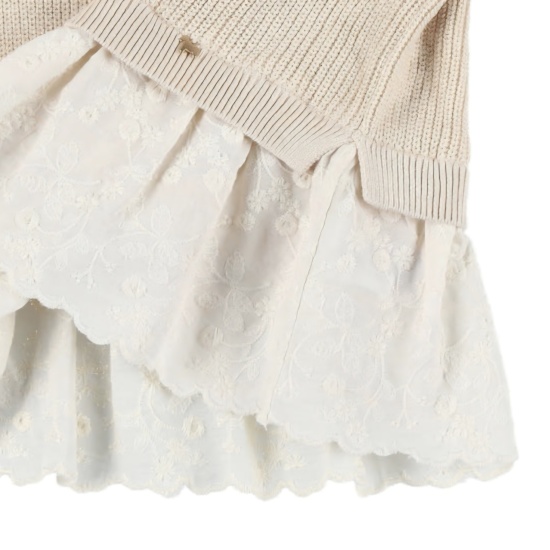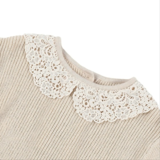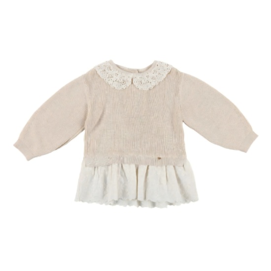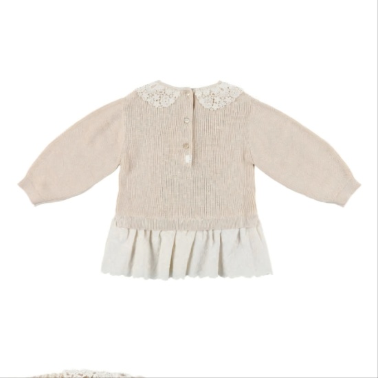 베이지 컬러의 부드럽고 편안한 핏의 여아 롱 스웨터