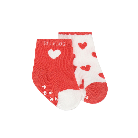 귀여운 하트 패턴에 강아지 자수로 포인트를 주었고 양말과 세트를 구성하여 출산 선물로도 인기가 좋은 아이템 입니다.