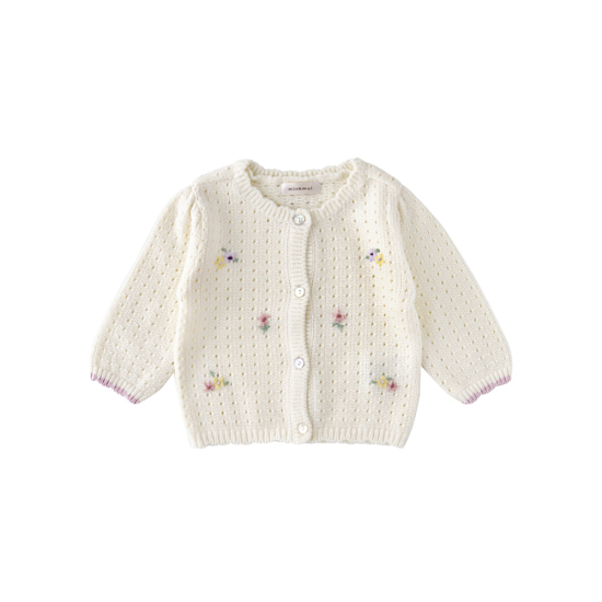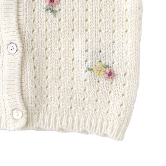 소프트한 아이보리 컬러의 코튼플라워 니트 가디건입니다.