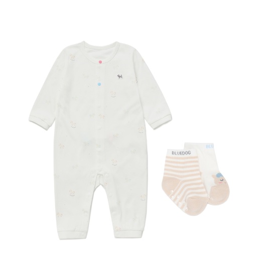 우주복에 세트양말을 세트상품으로 구성하여 출산 준비나 출산 선물용으로 인기가 좋은 아이템 입니다.