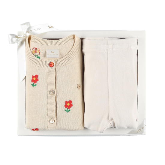 귀엽고 사랑스러운 꽃 쟈가드를 포인트로 준 니트 상하레깅스 끝에 둥근 꽃잎을 연상케 하는 스칼럽 시보리로사랑스러운 스타일의 유아 상하복 입니다. 배송메세지란에 메모를 남기시면 선물포장 됩니다.