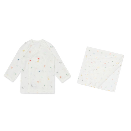 사파리 패턴이 그려진 속싸보입니다.소재는 모달 이중직 욜 거즈 원단을 사용하여 티치감이 부드럽고 통기성이 좋아