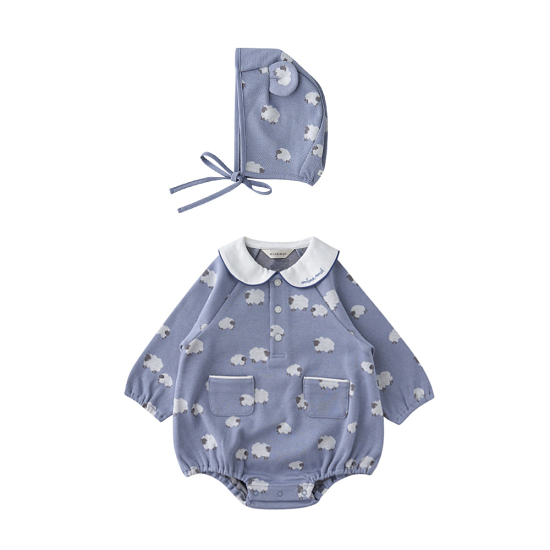 귀여운 양패턴의 부드 럽고 스판끼 좋은 자가드 져지소재로 바디슈트를 구성하였습니다.