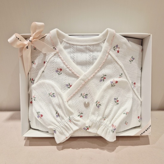 캡도트 스타일의 여밈이 간편한 기본 배내가운,손싸개세트입니다.