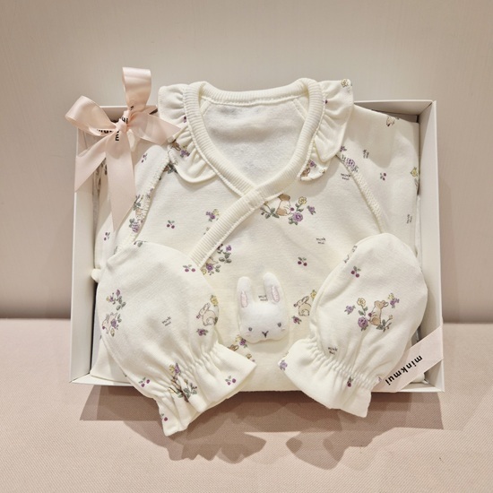 토끼와 꽃 조화의 패턴에 루루토끼 인 형을 포인트로 준 디자인으로 출산용으로 선물하기 용이한 아이템 입니 다.