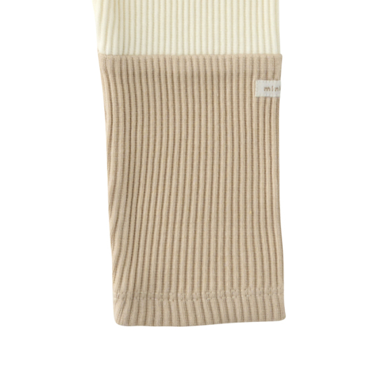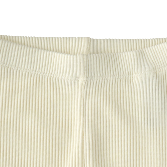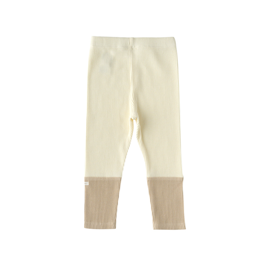 베이직한 아이보리 컬러와 베이지 배색단이 매치 되어 있는 골지 스판 레깅 스입니다.