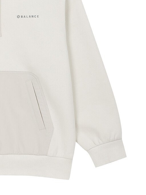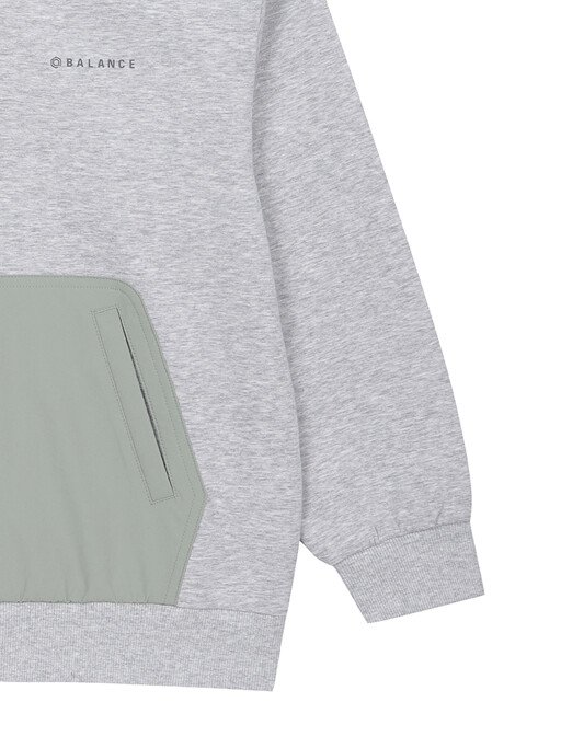 3. 배색 컬러의 캥거루 포켓, 어깨, 에리 부분에 화섬 원단 매칭