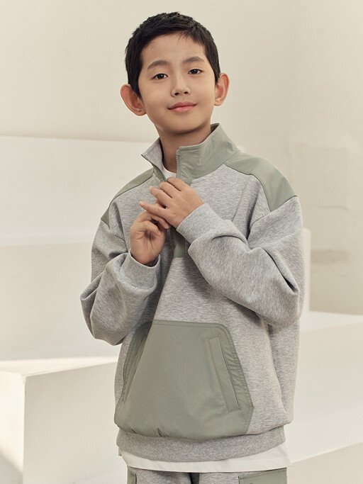 4. 아노락 형태의 지퍼로 입고 벗기 편한 맨투맨