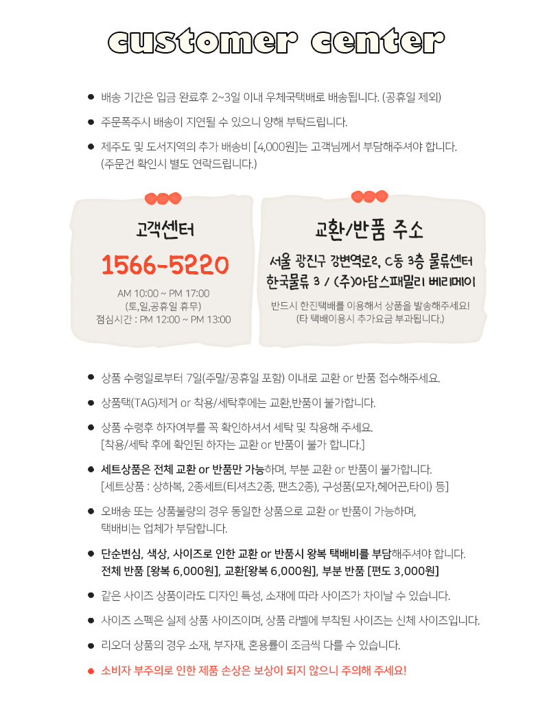 반품 주소 서울 광진구 강변역로 2 C동 3층 물류센터 한국물류3 (주)아담스패밀리