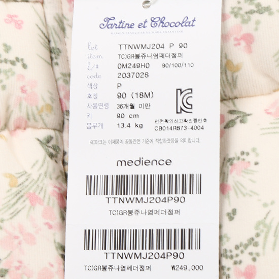 (롯데백화점)봉쥬나염페더점퍼TTNWMJ204P
