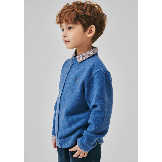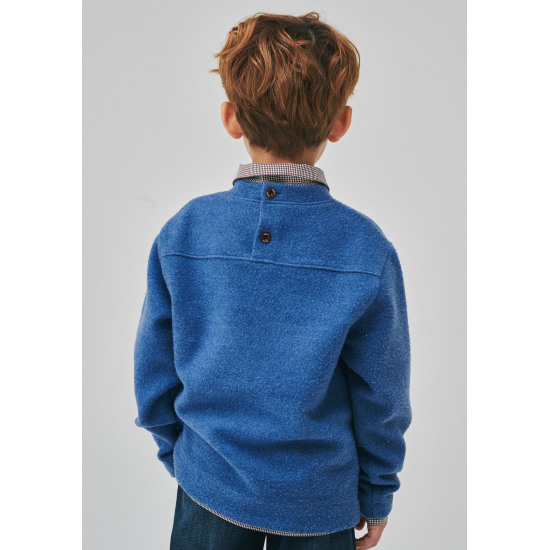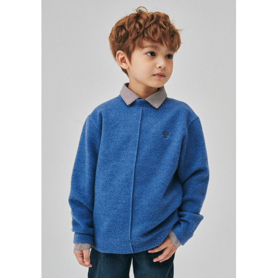 세련된 블루 컬러의 반넥 티셔츠입니다. 부드럽고 따뜻한 촉감과 세련된 블루 컬러가 만나 포근한 느낌으로 연출 할 수 있는 아이템입니다. 살짝 올라오는 반넥으로 제안하여 안쪽에 브라운 체크 블라우스를 입고, 네이비 블루 컬러의 기모 소재의 데님팬츠와 함께 코디하면 캐주얼하면서 세련된 느낌의 겨울 남아 스타일링을 제안할 수 있습니다.