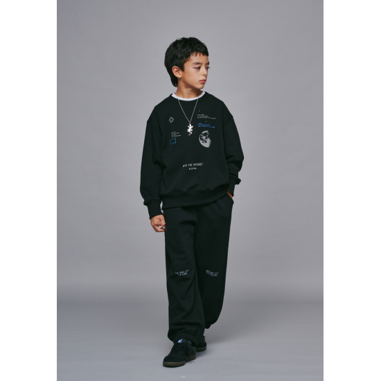 앞뒤 유동적인 절개 라인이 입었을 때 좀 더 입체적인 블랙 맨투맨 티셔츠입니다. 소매 암홀 곡선을 따라 절개를 주어 착용 시 떨어지는 실루엣이 매력적입니다. 앞판에 우주의 행성과 센서티브한 감성의 레터링 나염으로 포인트를 주었습니다.