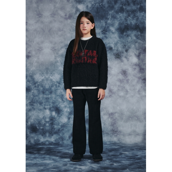 딥한 컬러감이 돋보이는 헤어리 원사로 제안한 크루넥 스웨터입니다. 레드 컬러 레터 자카드로 임팩트있는 로고 포인트를 제안했습니다. 헤어리하여 보온성이 좋으며, 신축성이 좋아 늘어짐이 없는 아이템입니다.