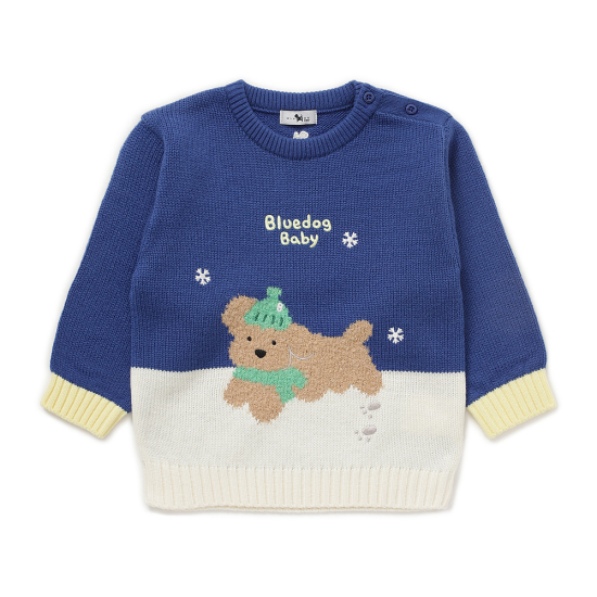 소프트한 터치감의 스노우 도기 니트 스웨터 입니다.비틀어 짜지 마시오, 삶지마시고 단독 손세탁하여 주십시오, 세제에 30분 이상 담가두지 마시고 세탁 후 바로 건조하여 주십시오,